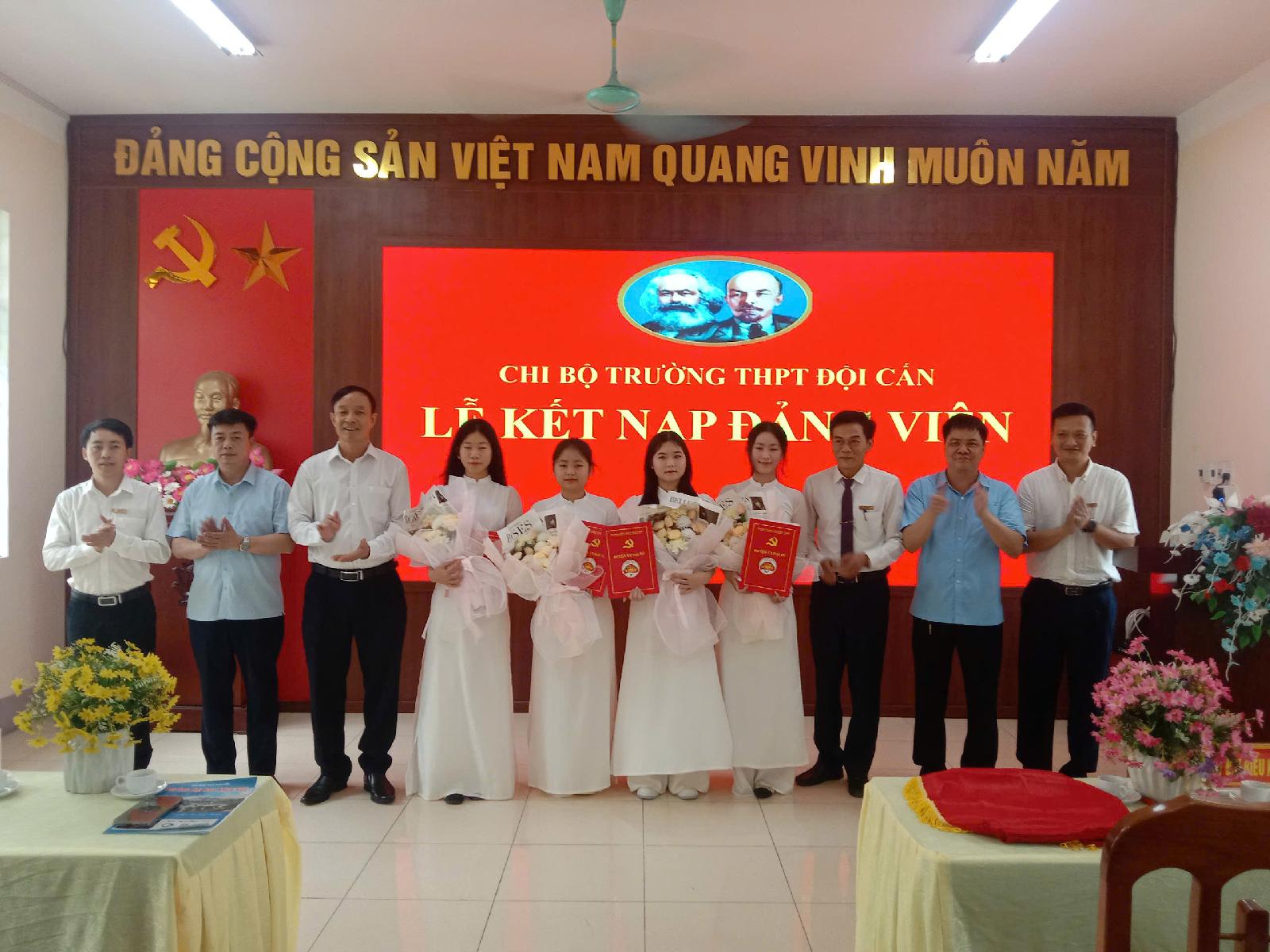 Sáng 22-5, Chi bộ Trường THPT Đội Cấn (Đại Từ) đã tổ chức Lễ kết nạp đảng viên cho 4 học sinh. Dự buổi Lễ có đồng chí Nguyễn Mạnh Hoạt, Phó Bí thư Thường trực Huyện ủy, Chủ tịch HĐND huyện, đồng chí Nguyễn Hữu Quyết Uỷ viên BTV Trưởng BTG và DV Huyện uỷ Giám đốc TTCT huyện cùng các Đàng viên trong chi bộ nhà trường.